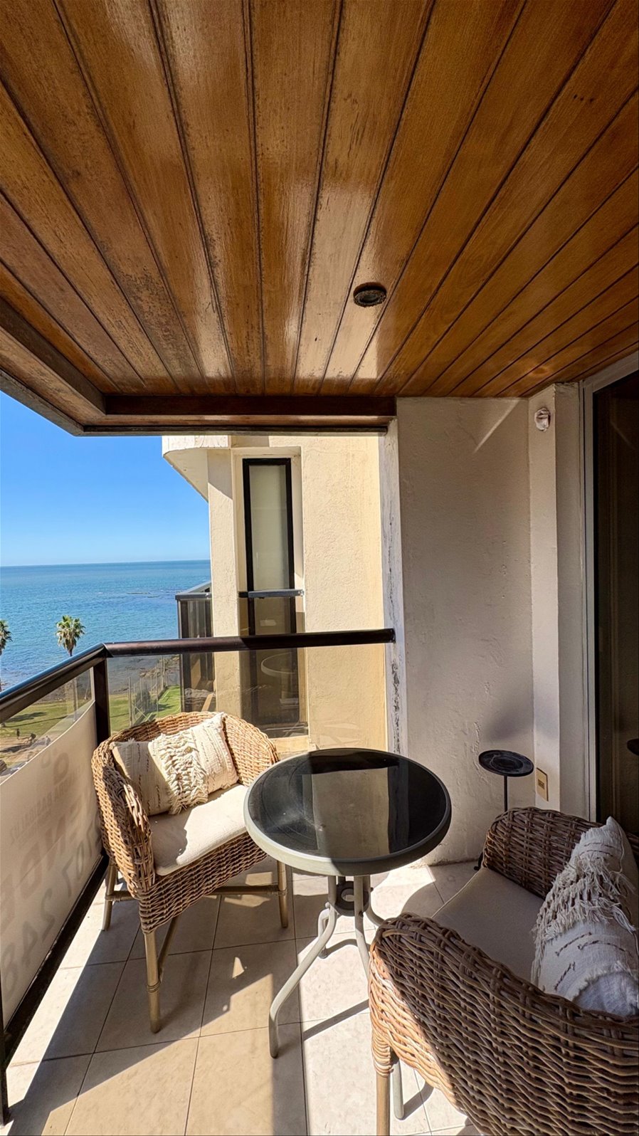 Living comedor con salida a terraza y vista al mar. Cocina definida al frente con muy buenos placares. Dos dormitorios con placares (uno en suite). Otro baño completo. Garaje fijo. Vigilancia 24 horas y losa radiante central. Gastos comunes $ 16.500