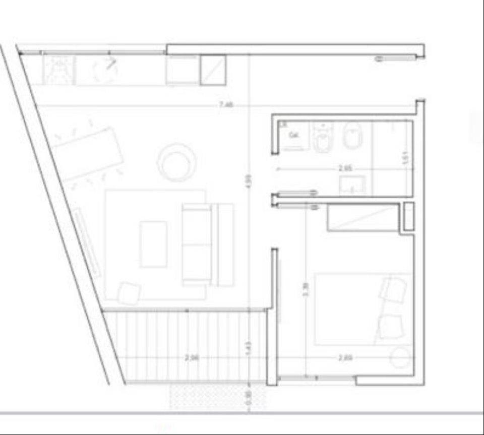 Amplio living-comedor con salida a amplia terraza de 4m2, cocina integrada, un dormitorio y baño. Este apartamento cuenta con una terraza de usos exclusivo en la azotea de 25m2