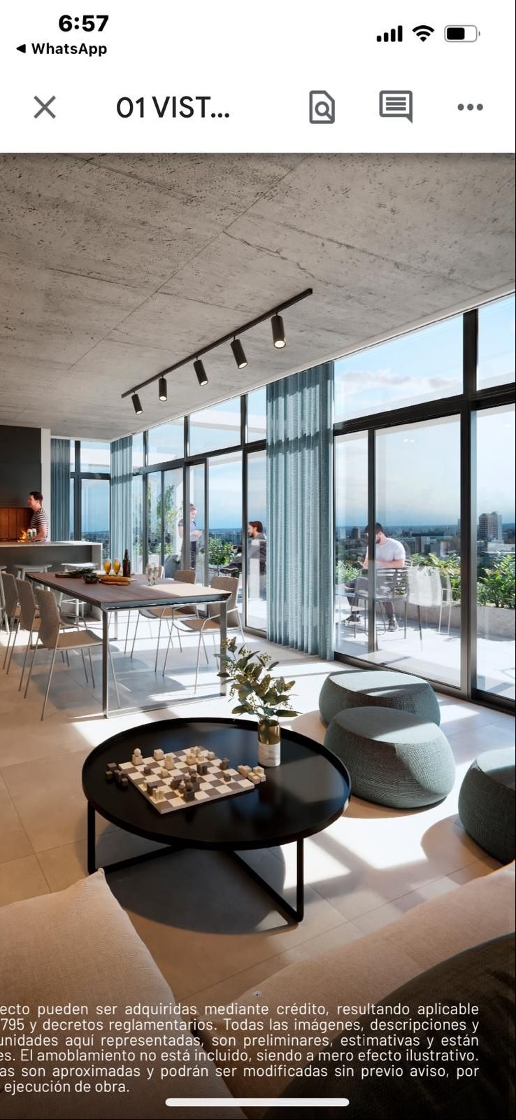 Living comedor con salida a la terraza, cocina integrada con placard bajo mesada. Dormitorio y baño